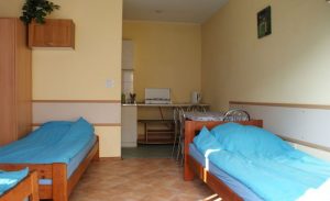 Drugi, usytuowany w głębi posesji, dwukondygnacyjny budynek, oferuje proste w wykończeniu i funkcjonalne w użytkowaniu pomieszczenia. Na parterze znajdują się pokoje trzy- i pięcioosobowe, z możliwością dostawki. Piętro, to pokoje cztero- i pięcioosobowe. Wszystkie posiadają łazienkę z kabiną prysznicową, aneks kuchenny z lodówką, kuchnią gazową i podstawowymi naczyniami, oraz wyposażone są w telewizor i dostęp do Internetu. Przeznaczone są dla pracowników firm. Zapewniają wygodny i spokojny wypoczynek po pracy.